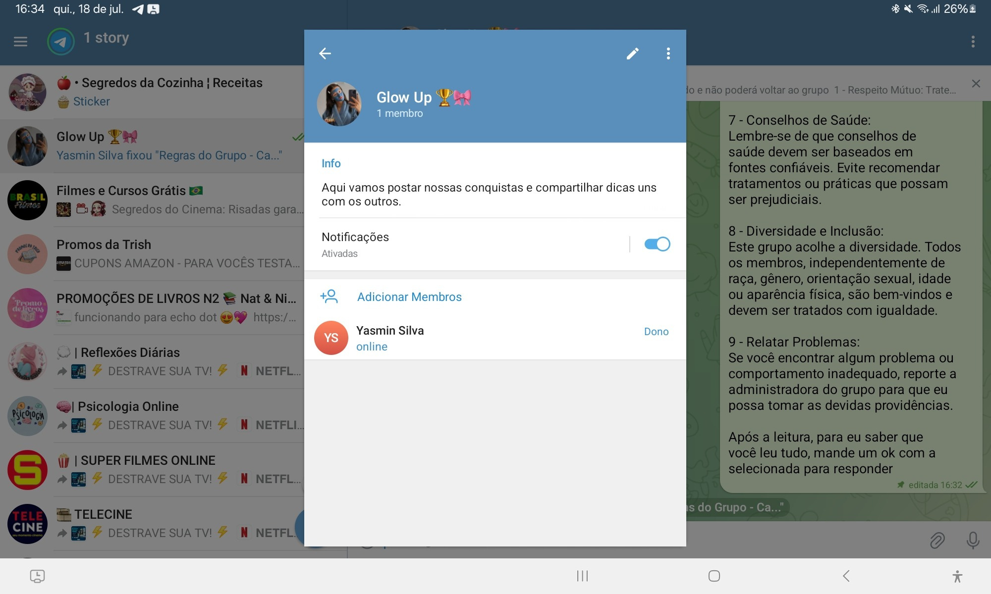 Você vai ganhar de presente o acesso a um canal no telegram para conversar e postar sobre suas mudanças e suas conquistas